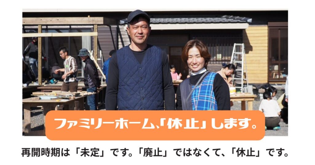 2025年9月1日(月)から、当面の間、ファミリーホーム「米重さん家(げー)」を休止します。