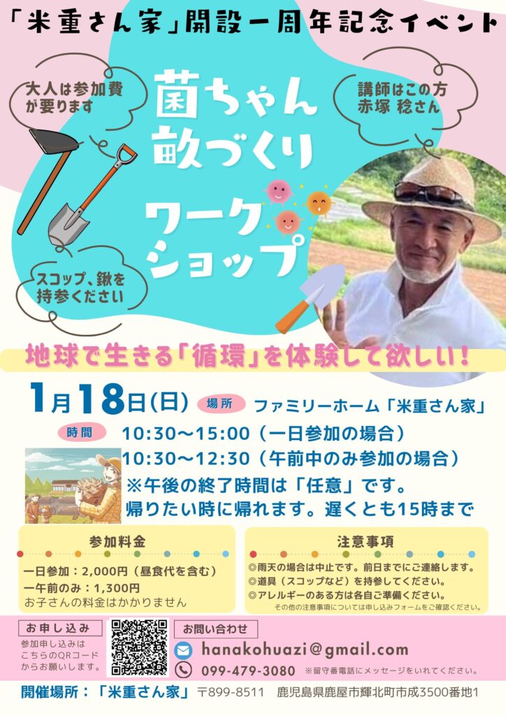 開設一周年のイベント=菌ちゃん畝づくりワークショップを行います。